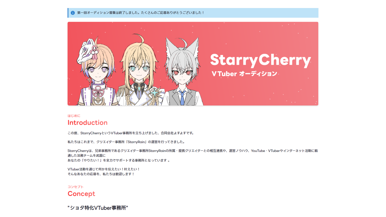 ショタVTuber事務所StarryCherry オーディション特設ページ制作